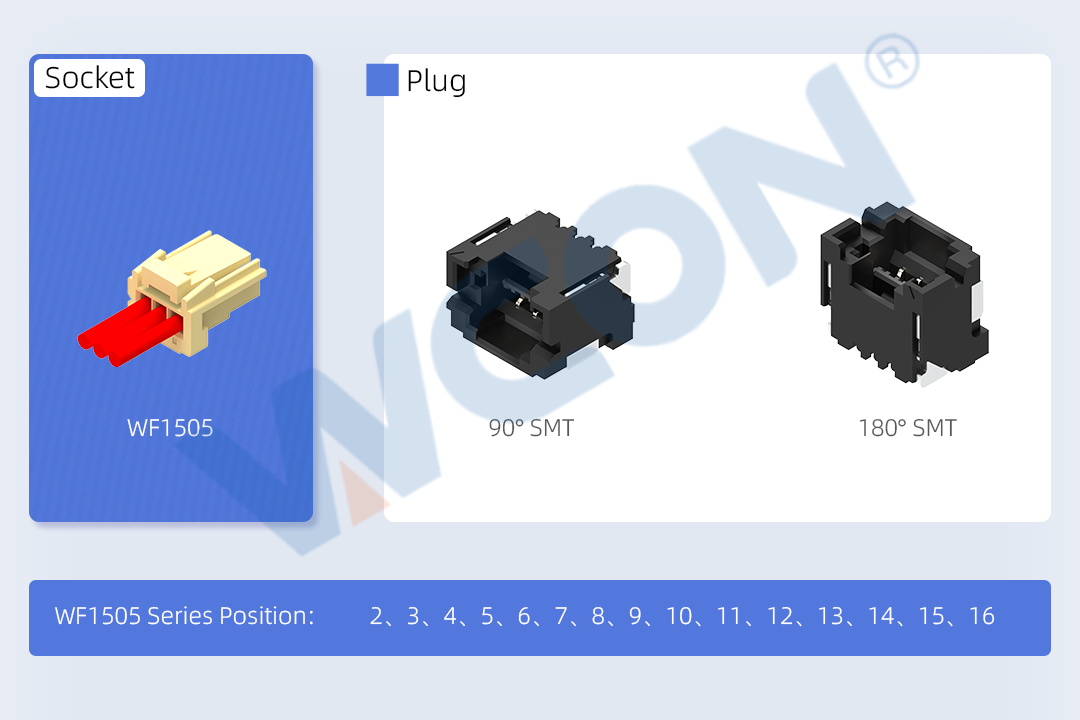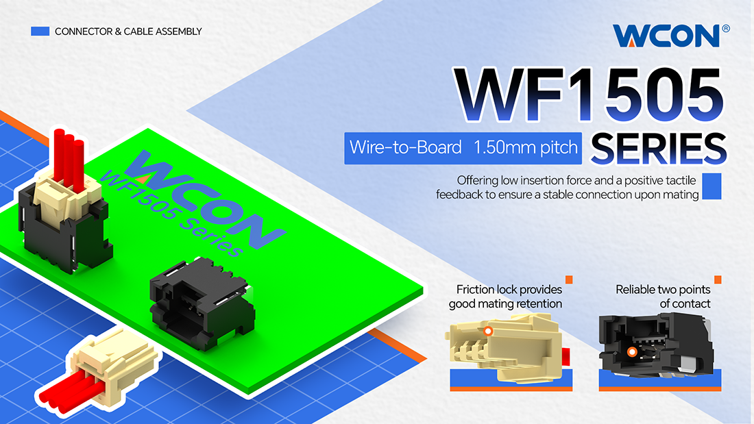 As electronic devices become increasingly compact and modular, higher demands are placed on connector stability. The WF1505 series is a 1.50mm pitch crimp- type wire- to- board connector featuring low insertion force and a distinct tactile feel. Paired with anti-misplug structure, it ensures precise alignment and stable connections.